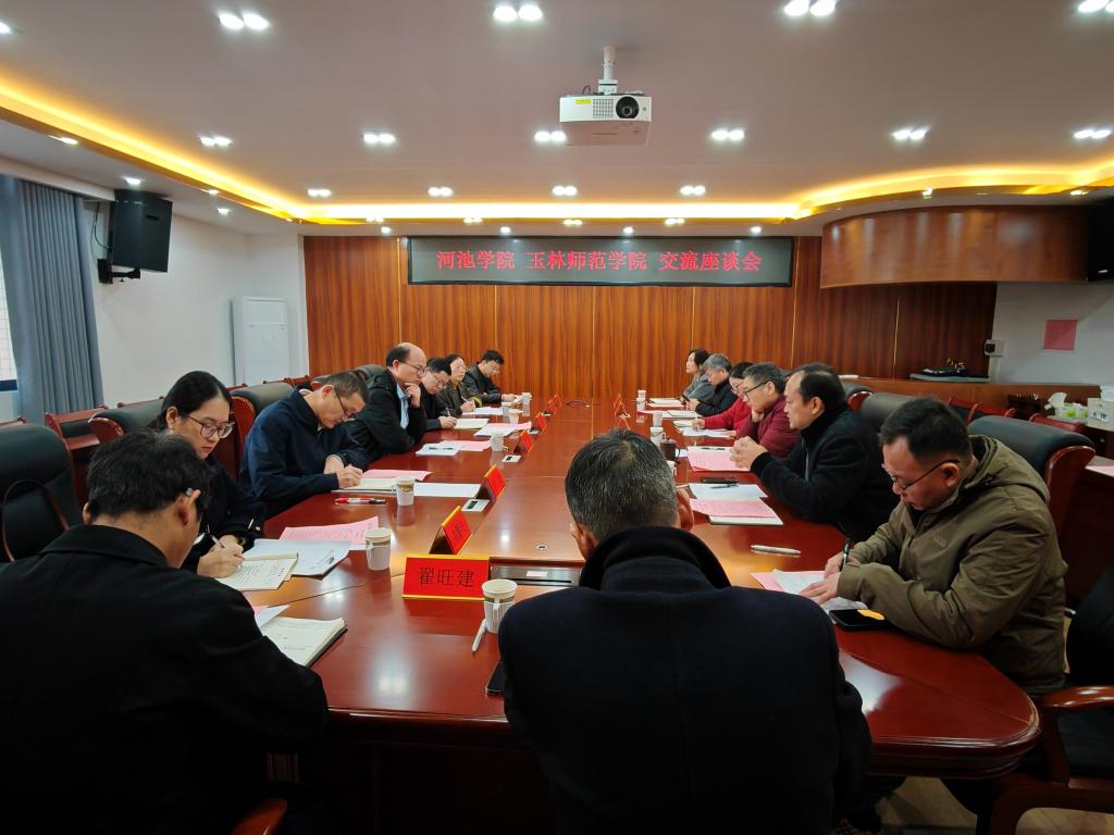 12月26日,河池学院副校长贺卫国一行6人莅临我校,围绕学科建设提质、硕士点申报攻坚等核心工作开展专题调研。玉林师范学院副校长刘永建出席并主持座谈会。双方就对口领域工作进行深度交流探讨。